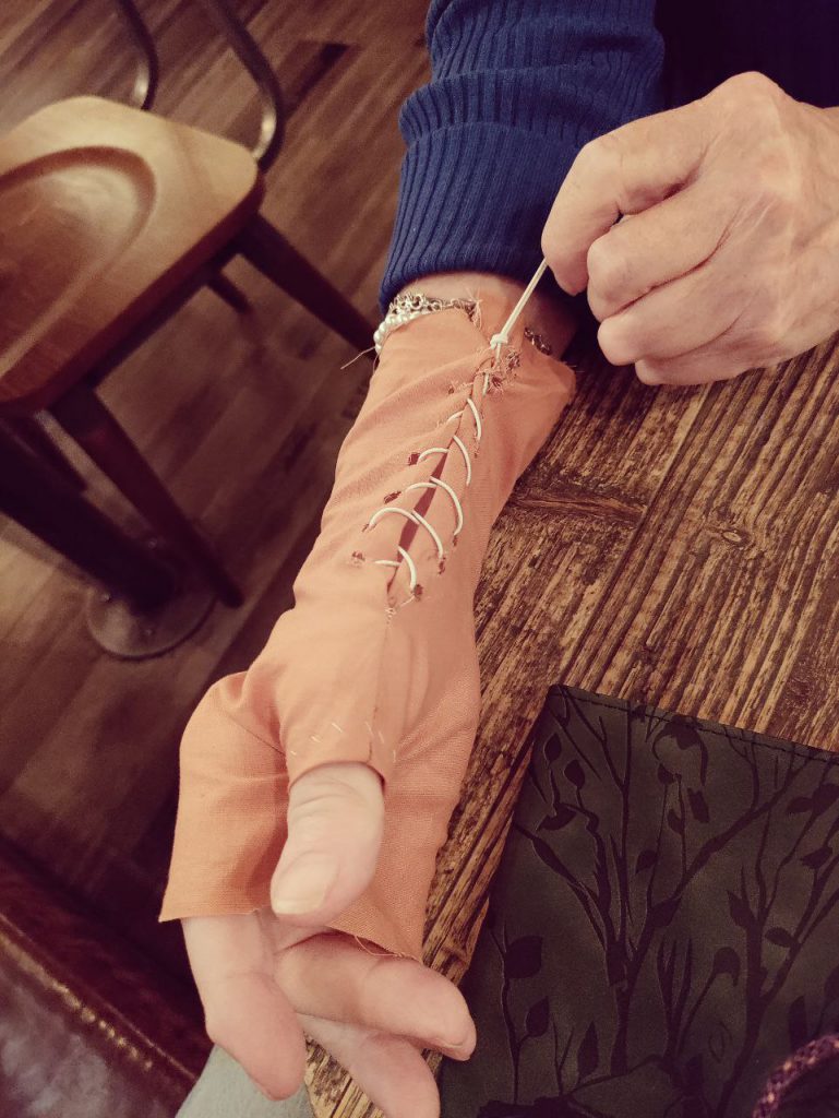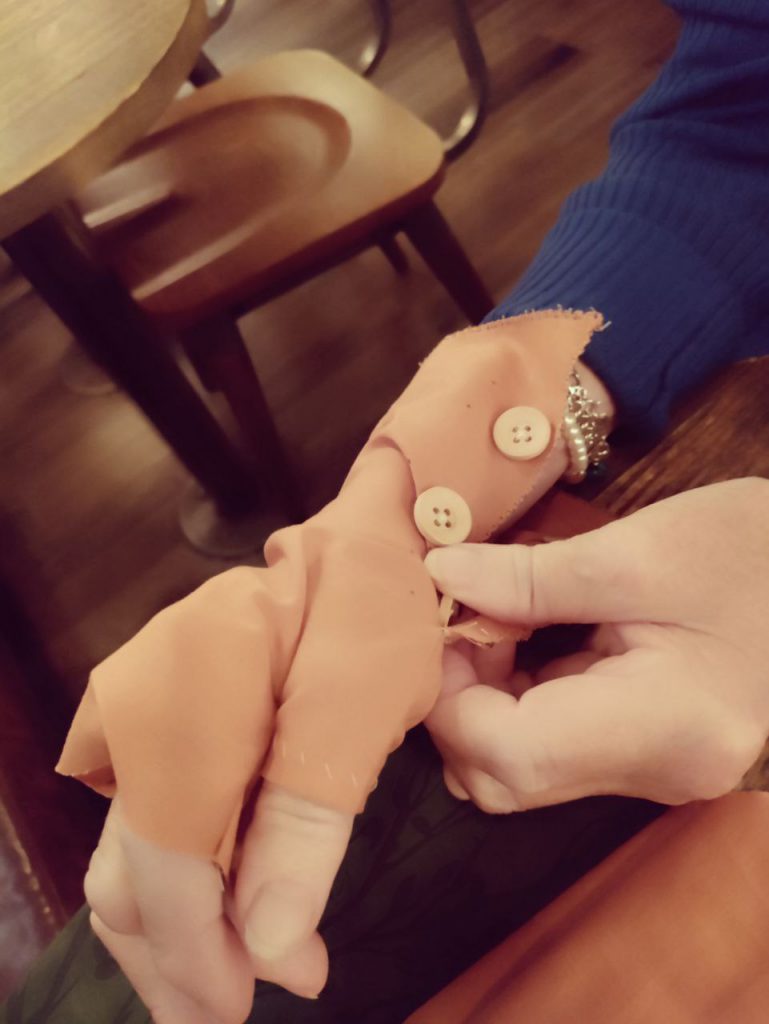 Eftersom jag ville visa upp hur anpassningsbara ortosernas utseende är tog jag fram fyra olika tygdesigner med tillhörande färgsättning på fingerortoserna.